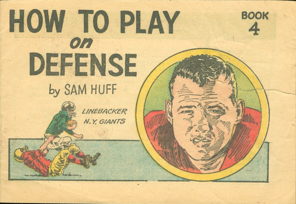 New York Giants' linebacker Sam Huff was not only featured on book 4, "How to Play on Defense," but also appeared in four Post commercials for Alpha-Bits, Grape Nuts Flakes, Post Toasties and Sugar Crisp.